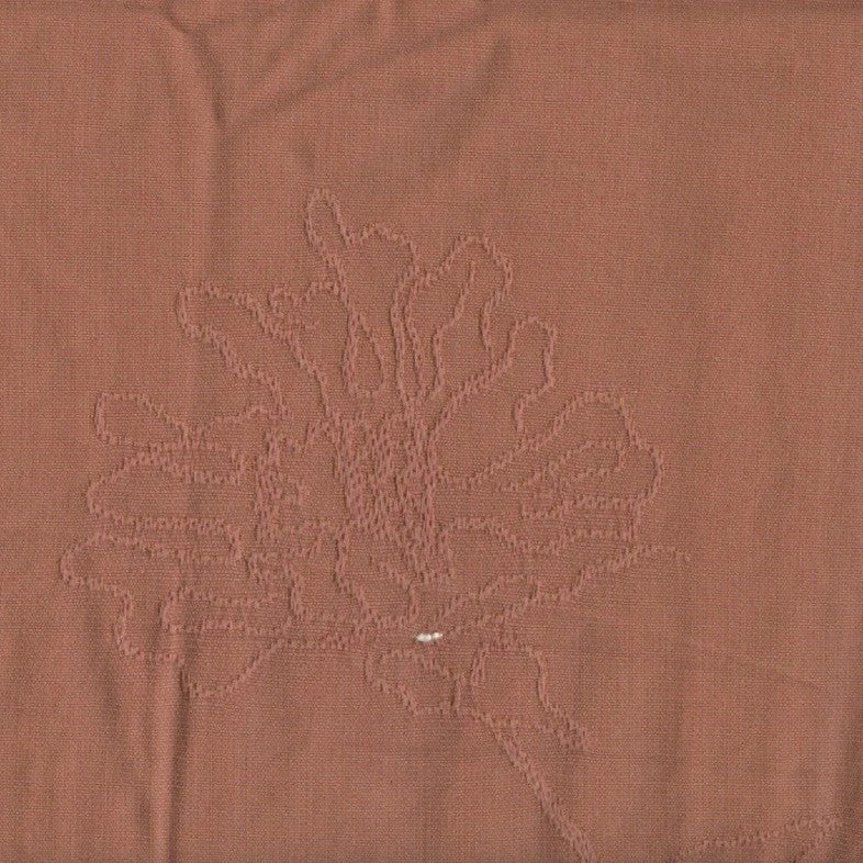 Desire is a semi plain floral fabric in soft terracotta with a delicate stitched flower stem throughout the design